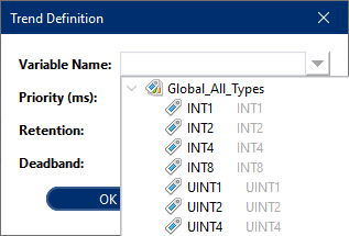 To start a Data Trending it is a pre-requisite to have a Variable that already exists. Only then can the Data Trending be started.