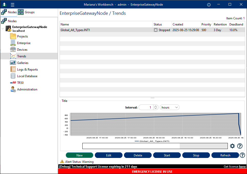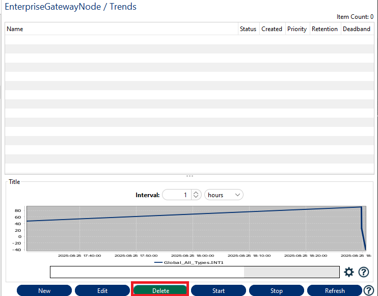 To delete a Trending, select the Trending Variable from the table and press the button "Delete" at the bottom of the tab.