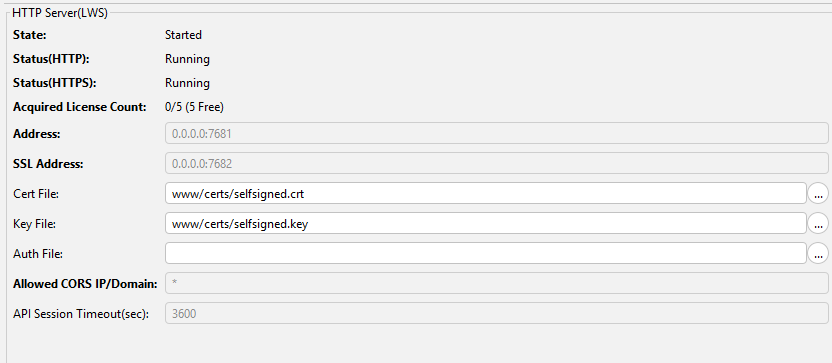 | Auth File | Path to an authentication configuration file used by HTTP Server (LWS) |