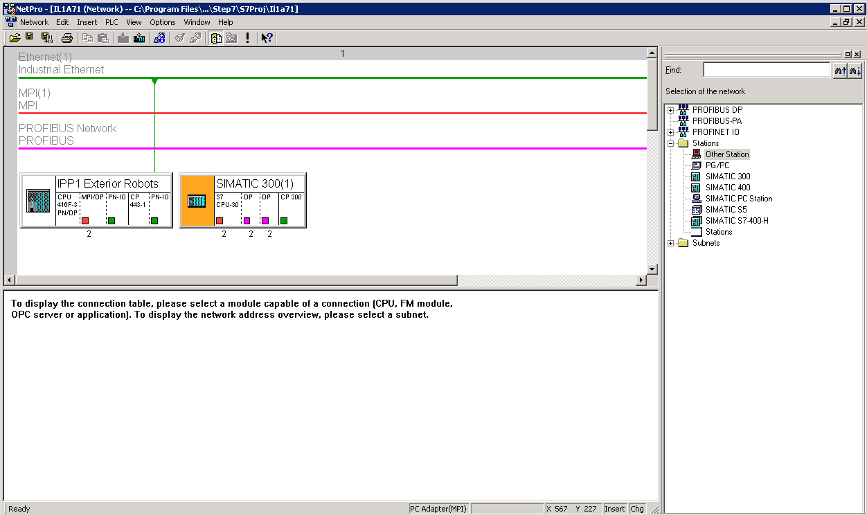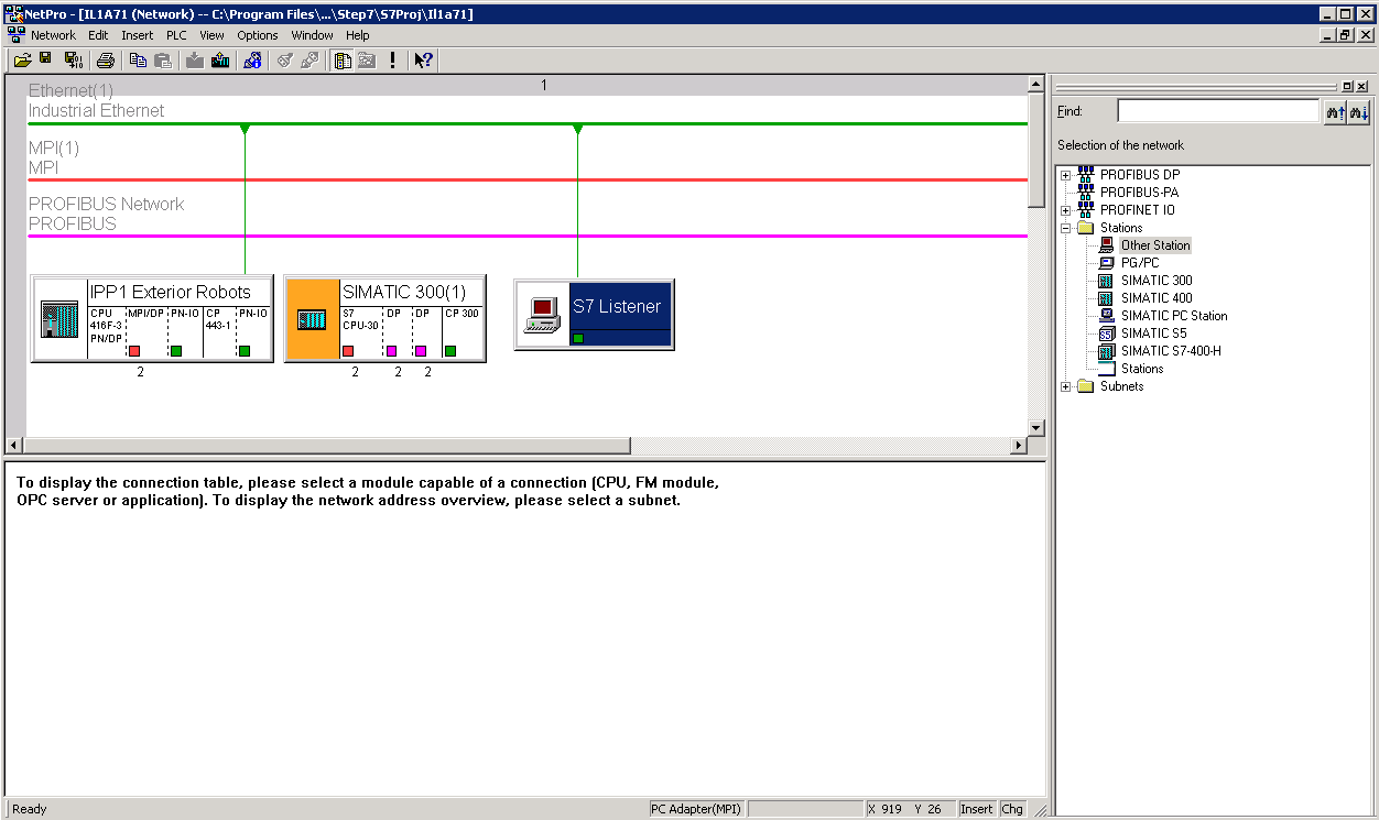 - Select the Ethernet item in the Subnet window that will provide the communications link between the S7 PLC and the node.