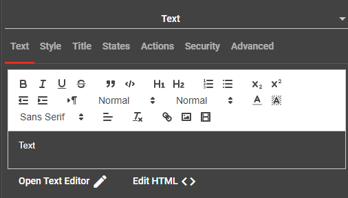 The Text tab is a WYSIWYG visual editor. You will be able to enter rich text, images, and HTML content.