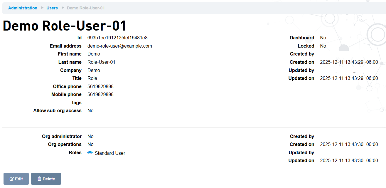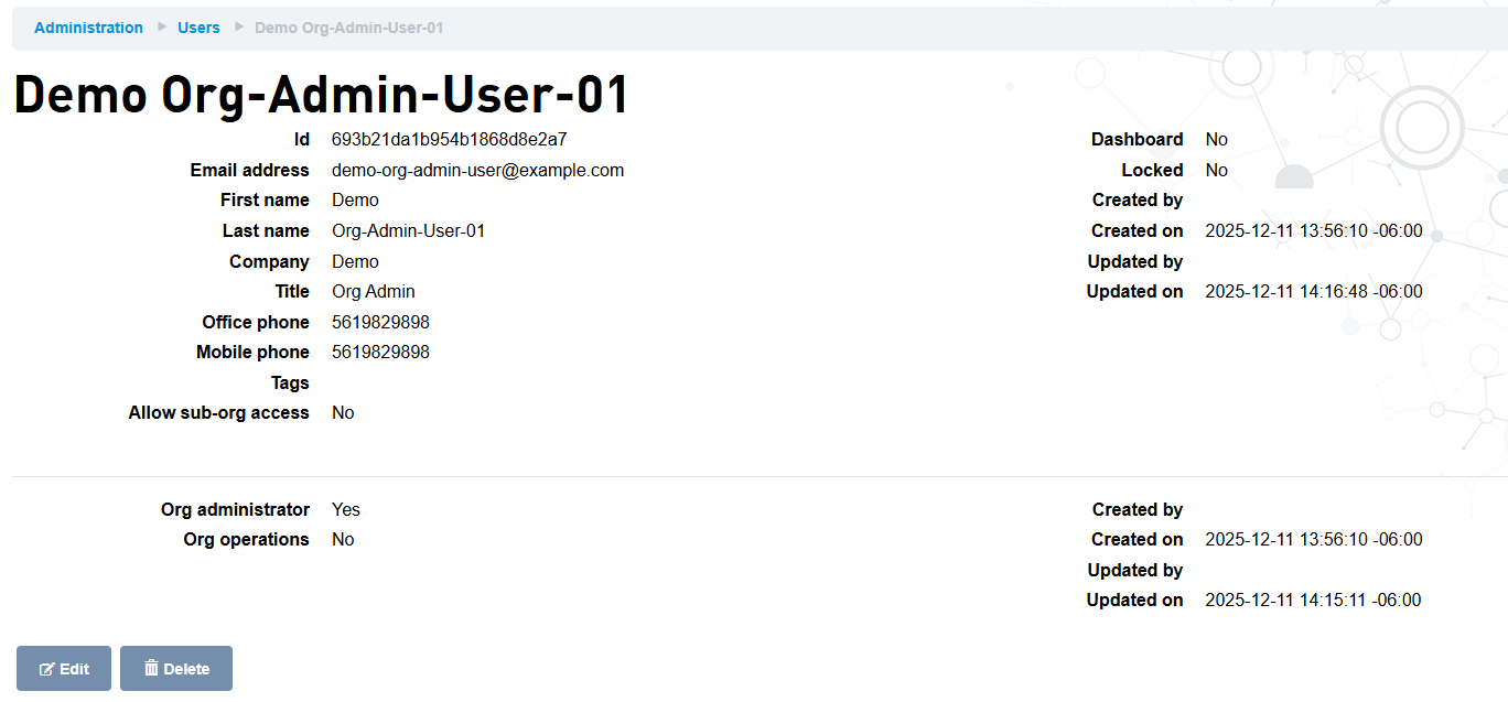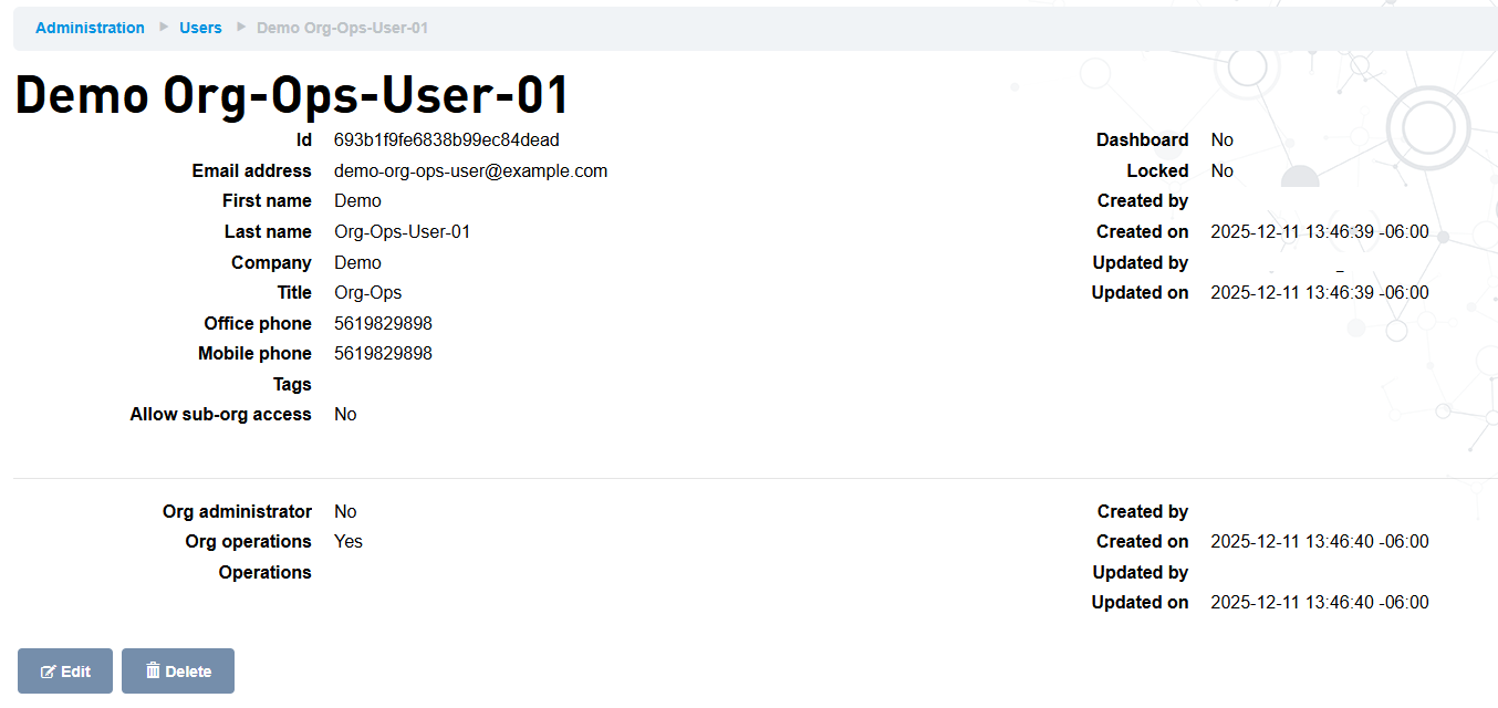 | Allow sub-org Access | Is the user allowed access to sub-organizations |