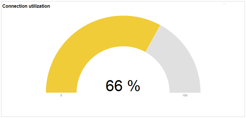 The Connections utilization gauge widget shows the percentage of the available connections that are in an activated state.