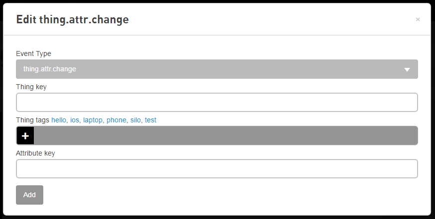 Thing key | String | This trigger can be limited to a thing specified by key. Leave blank to not limit this trigger to a specific thing. | |