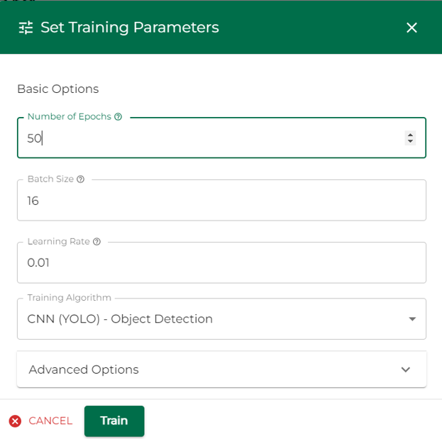 Base Model Selection* This option enhances a previously trained model by selecting it as a 'Base Model'. This technique is known as Transfer Learning and can lead to improved performance and faster training times. GPU Configuration* For system with multiple GPUs, users can specify which GPUs to use for training. This allows for more efficient use of resources and can significantly speed up the training process. (*) Advanced Options The learning process of a model will depend mainly on the complexity of the task and the variables set above. The default values provided are already balanced. If needed, they can be personalized. To check if the model is returning good results, check the Training Dashboard, the Box Loss should be less then 1.0.